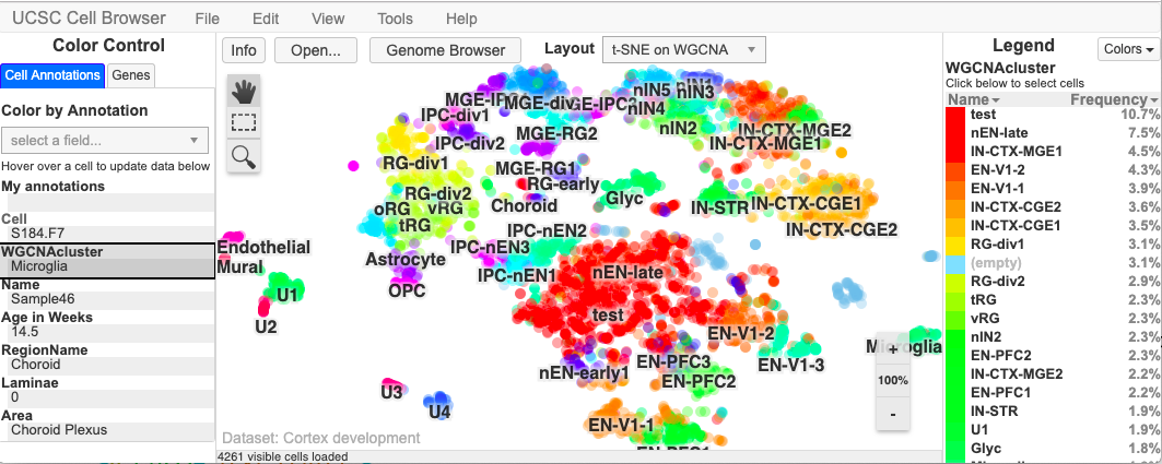 Single cell experiments measure tens of thousands of gene loci in thousands of cells at the same time. That resulting data is challenging to visualize. The UCSC Genome Browser is adding published datasets as tracks and an entirely new data exploration tool: